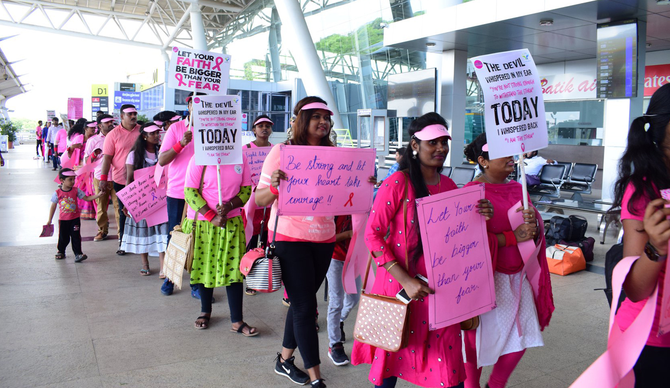 India Turns Pink Pink Pledge Walk at Chennai International Airport